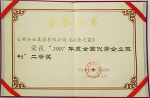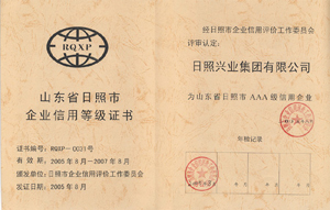 ·2007年3月,日照市企業(yè)信用評價工作委員會評審認(rèn)定興業(yè)集團為“山東省日照市AAA級信用企業(yè)”