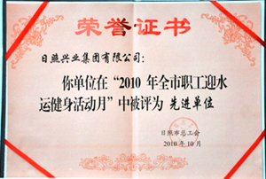 ·2010年10月,興業(yè)集團(tuán)在“2010年全市職工迎水運(yùn)健身活動月”中被日照市總工會評為先進(jìn)單位