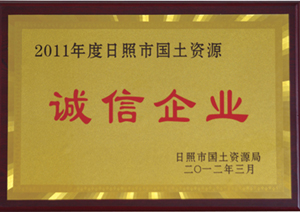 ·2012年3月,2011年度日照市國土資源誠信企業(yè)
