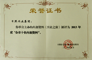 ·2014年5月,《興業(yè)之窗》獲2013度“全市十佳內(nèi)部資料”稱號(hào)