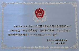 ·2014年7月,興業(yè)集團(tuán)獲得山東省工商行政管理局2012-2013年度“守合同重信用”企業(yè)公示資格