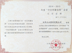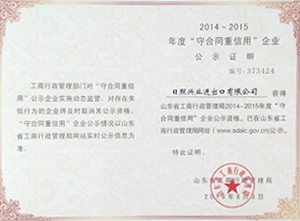 ·2016年8月,日照興業(yè)進出口有限公司獲得山東省工商行政管理局2014--2015年度“守合同重信用”企業(yè)