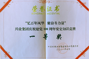 2022年6月,興業(yè)集團獲“憶百年風(fēng)華 聚奮斗力量”慶祝建黨100周年黨史知識競賽一等獎