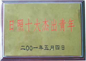 · 2001年5月4日,授予丁杰董事長(zhǎng)“日照十大杰出青年”榮譽(yù)稱(chēng)號(hào)
