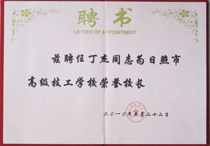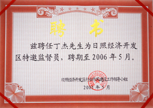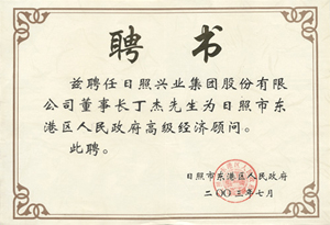 · 2003年7月,茲聘任丁杰董事長(zhǎng)為日照市東港區(qū)人民政府高級(jí)經(jīng)濟(jì)顧問(wèn)