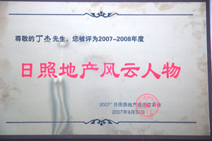 · 2007年9月30日,丁杰董事長(zhǎng)榮獲“日照地產(chǎn)風(fēng)云人物”榮譽(yù)稱(chēng)號(hào)