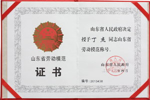 ·2013年4月,山東省人民政府授予丁杰董事長(zhǎng)“山東省勞動(dòng)模范”稱(chēng)號(hào)