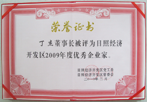 · 2010年2月,丁杰董事長(zhǎng)榮獲“日照經(jīng)濟(jì)開(kāi)發(fā)區(qū)2009年度優(yōu)秀企業(yè)家”榮譽(yù)稱(chēng)號(hào)
