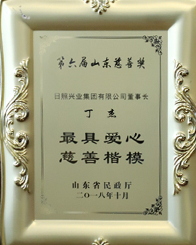 ·2018年10月,丁杰董事長(zhǎng)被授予山東省“最具愛(ài)心慈善楷!