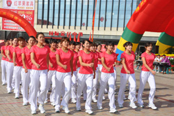 2013年9月28日,第九屆職工運動會在興業(yè)財富廣場舉行,圖為社區(qū)中老年文體活動俱樂部精彩的開幕式表演。 |