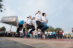 2006年5月1日,第二屆運動會在山海天花園門口舉辦,集團(tuán)董事長丁杰、副總裁申作華在越野比賽中。 |