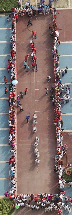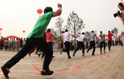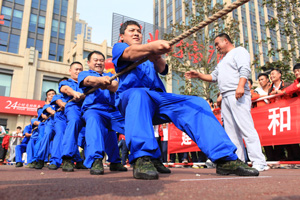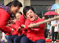 當(dāng)天,來(lái)自興業(yè)集團(tuán)各下屬單位的8支代表隊(duì)476名運(yùn)動(dòng)員精神飽滿地參加了“團(tuán)體跳繩”、“開(kāi)火車”、“協(xié)作運(yùn)球接力”、“車輪滾滾”、“滾雪球”、“拔河”等團(tuán)體項(xiàng)目的比賽,整個(gè)現(xiàn)場(chǎng)氣氛熱烈,充滿激情,充分展示了“務(wù)實(shí)、創(chuàng)新、拼搏、進(jìn)取、奉獻(xiàn)”的興業(yè)精神和活力、和諧的企業(yè)風(fēng)采。另外,興業(yè)社區(qū)中老年文體活動(dòng)俱樂(lè)部在開(kāi)幕式上進(jìn)行了太極拳和健身操表演。精彩的開(kāi)幕式表演和緊張激烈的比賽吸引了眾多市民駐足觀看。