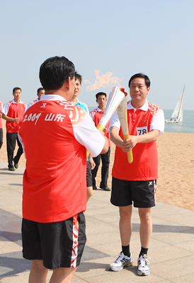 秋高氣爽,風(fēng)和日麗。9月23日上午,日照海濱彩旗飄揚(yáng),萬眾歡騰,主題為“祝福祖國,共享全運(yùn),國泰民安,傳遞和諧”的中華人民共和國第十一屆運(yùn)動(dòng)會(huì)火炬?zhèn)鬟f活動(dòng)在日照舉行。集團(tuán)董事長丁杰光榮成為全運(yùn)會(huì)的火炬手,參加了當(dāng)天全運(yùn)會(huì)火炬日照傳遞活動(dòng)。