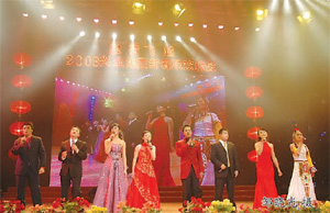 is gotta be you》展現了興業(yè)年輕一代的青春風采。魔術《劍懸少女》為晚會制造了緊張氣氛,我們的心真的懸了起來。專題片《來自墨西哥的祝福》帶給了我們奮斗在異國他鄉(xiāng)的同事們的真誠祝福,現場塵土飛揚,機器轟鳴,而他們卻在無怨無悔的奉獻著,我們用熱烈的掌聲向他們表示了超高的敬意。《卡門狂想》跳出了興業(yè)人的熱情與奔放。吉他彈唱《一封家書》唱出了遠離家鄉(xiāng)、遠離父母、奮斗在興業(yè)各條戰(zhàn)線上的兒女們思家和感恩父母的情懷。舞蹈《軍中姐妹》展現了房產銷售一線的姑娘們的志氣與豪邁。舞蹈《康定情歌》那快節(jié)奏的舞姿淋漓盡致的散發(fā)出了興業(yè)人精神抖擻、昂首前進的精神風貌。歌舞《龍船調》給我們講述了一個少數民族愛情故事。三句半《說唱興業(yè)》那搖頭晃腦、詼諧的說唱風格逗的觀眾捧腹大笑。獨唱《遇上你是我的緣》用優(yōu)美的歌聲唱出了在興業(yè)工作的同仁們惜緣、惜福、惜興業(yè)的感情。由興業(yè)投資建校培育出的小精靈們?yōu)槲覀儙淼摹垛弮喉懚.敗罚屛覀儔艋赝。舞蹈《世紀春雨》的舞者都是年過半百的阿姨,她們用心靈跳出了對美好生活的贊美。獨唱《愛我中華》為整臺晚會獻上了一道專業(yè)的精美大餐。接著雜技《滑稽球》將整臺晚會帶到了最高潮,藝術家周天那搞笑的面孔、詼諧的表演手段,讓所有的觀眾都唏噓不已、掌聲不斷......整臺晚會歷時兩個多小時,節(jié)目品種齊全,高潮接連不斷,晚會氣氛熱烈、節(jié)目檔次質量高、觀眾激情高漲,,一曲《激情飛越》帶動了所有的演員及集團領導班子一同上臺同聲歌唱,最后晚會在悠 揚的歌聲中落下帷幕......